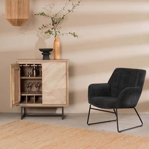 Todas las celebraciones comienzan junto al Bar Luna. Fabricado en madera de Acacia, tiene una terminación desgastada natural en color arena y sus bandejas internas se ajustan al nivel que desees para acomodar perfectamente tus copas, botellas y todo lo necesario para atender a tus invitados. Este bar importado de Vietnam, cuenta con bisagras de cierre suave y patas de metal negro, en un diseño moderno y contemporáneo perfecto para cualquier rincón de tu living o comedor.
