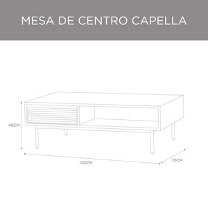 La Mesa de Centro Capella combina diseño limpio y funcionalidad en una pieza de gran carácter.