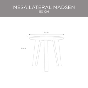 La Mesa Lateral Madsen irradia naturalidad y simplicidad. Fabricada en madera sólida de acacia, su diseño redondo y sus tres patas robustas evocan calidez y equilibrio. Ideal como acento decorativo o apoyo funcional junto a tu sofá o cama, aporta un toque escandinavo que transforma cualquier rincón en un espacio acogedor y lleno de estilo.