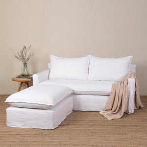 Pouff Dominga es perfecto para cualquier ambiente. Realizado en lino aportando un look natural, con una funda desmontable y lavable, es ideal para usarse como chaise long. Esta pieza no sólo es resistente y duradera, sino que también aporta un toque moderno y natural a tu hogar.