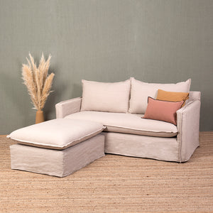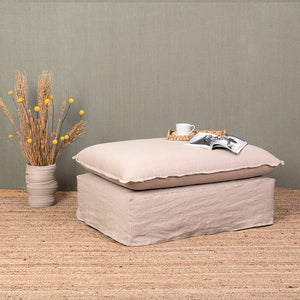 Pouff Dominga Natural es perfecto para cualquier ambiente. Realizado en lino aportando un look natural, con una funda desmontable y lavable, es ideal para usarse como chaise long. Esta pieza no sólo es resistente y duradera, sino que también aporta un toque moderno y natural a tu hogar.