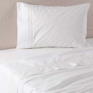 Sábana 200 Hilos Bordadas Espiga 1.5 Plazas Blanca
