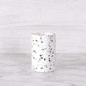 Nuestro Vaso Terrazo Molise para cepillos se integra perfectamente en tu baño, aportando sencillez y estilo. Una adición discreta que eleva la decoración con su diseño armonioso y funcionalidad impecable.