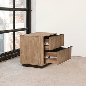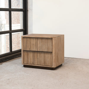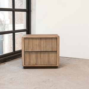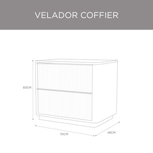 El Velador Coffier destaca por su elegancia sobria y líneas verticales que aportan textura y modernidad. Fabricado en madera sólida de acacia, incluye dos cajones con correderas telescópicas y tiradores sutiles que se integran al diseño. Su zócalo de metal decorativo añade un toque contemporáneo y refinado. Ideal para dormitorios que buscan funcionalidad, orden y un estilo distintivo con carácter.