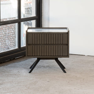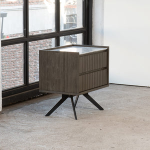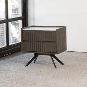 El Velador Lima eleva el diseño de tu dormitorio con una mezcla perfecta de sofisticación y funcionalidad. Su cubierta de mármol Carrara aporta un toque de lujo atemporal, mientras que su estructura de madera sólida de acacia y base metálica con acabado de electropintura brindan solidez y estilo. Con dos cajones de suave deslizamiento gracias a sus correderas telescópicas, es la elección ideal para espacios que buscan distinción y orden.