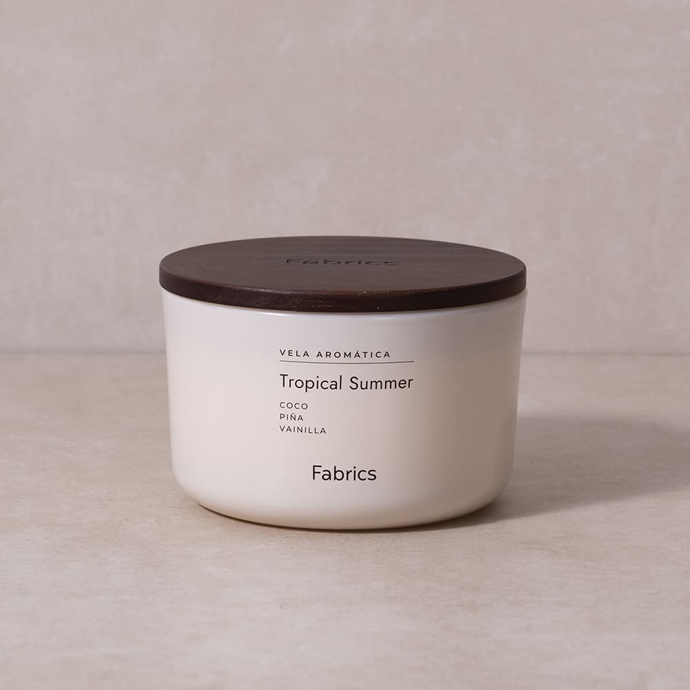 Nuestra Vela Tropical Summer, es una pieza decorativa que ilumina tu espacio con calidez y estilo. Su diseño transforma cualquier ambiente, creando una atmósfera acogedora y relajante. Perfecta para quienes buscan un toque natural y elevar la decoración de un espacio.