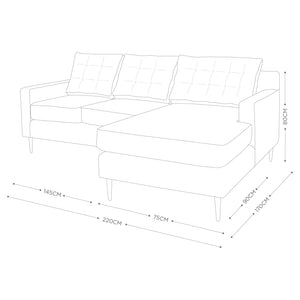 Ancho sofá: 145 cm.