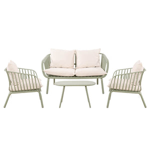 Redefine el estilo y la comodidad en tu terraza con el Set Terraza Astratto 4 Piezas. Incluye un elegante sofá, dos sillones y una mesa, todos diseñados en polipropileno y metal, combinando ligereza y resistencia. Los 8 cojines añaden un toque de confort y sofisticación. Disfruta de un espacio exterior que fusiona diseño contemporáneo y durabilidad para tus momentos de relax al aire libre.