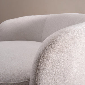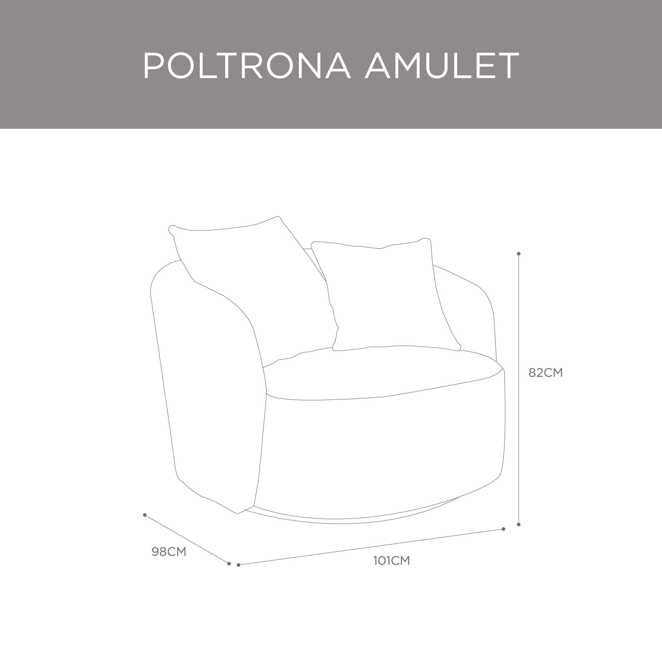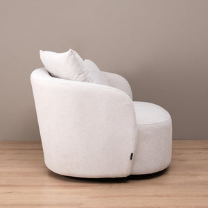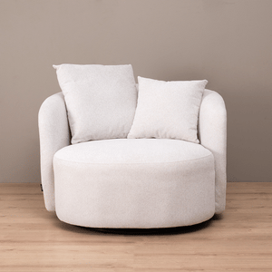 La Poltrona Amulet combina tendencia y comodidad en cada detalle. Su base giratoria permite moverte con libertad, mientras su estructura metálica y resortes nosag ofrecen un soporte firme y duradero. Tapizada en suave bouclé y acompañada de cojines decorativos, es el complemento perfecto para disfrutar tus momentos de calma con estilo.