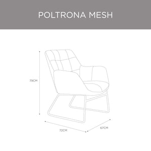 La Poltrona Mesh destaca por su diseño moderno y liviano, ideal para dar un toque de estilo sin perder comodidad. Tapizada en suave velvet y con estructura metálica firme, ofrece soporte gracias a sus resortes nosag y patas con pintura electrostática. Su diseño acolchado en malla brinda un look contemporáneo y acogedor. Perfecta para disfrutar cada momento con confort y personalidad.