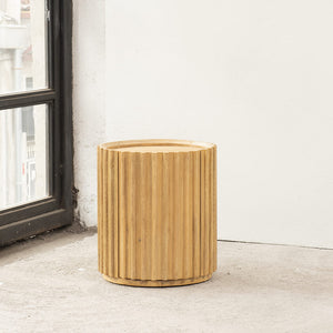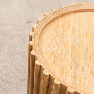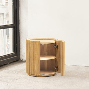 La Mesa Lateral Corfu destaca por su diseño envolvente y funcionalidad oculta. Fabricada 100% en madera sólida de acacia, incorpora una puerta abatible que da acceso a un compartimiento interior con repisa, ideal para guardar lo esencial con estilo. Su cubierta con borde resalta su silueta curva y textura vertical. Perfecta como complemento decorativo junto al sofá o la cama, aporta orden y personalidad al ambiente.