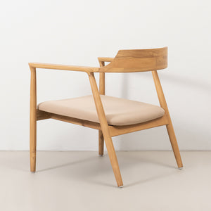 Material:Madera de teca, asiento con espuma y tela.