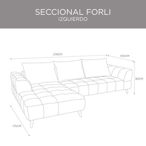 El Seccional Forli combina diseño moderno y resistencia. Sus patas metálicas con pintura electrostática y estructura firme brindan estabilidad, mientras que los resortes nosag ofrecen un confort duradero. Posee un sistema de fácil unión de sus partes. Ideal para compartir tus momentos en casa.