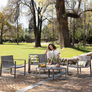1 Sofá Terraza Piazza: Ancho:121cm. Alto: 70cm. Profundidad: 61cm.