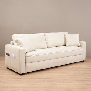 El sofá cama Roberta es la combinación perfecta de estilo y funcionalidad. Con su estructura de 3 cuerpos, resortes pocket y cubierta memory foam con cierre, ofrece un confort excepcional para tu descanso diario. Sus prácticos bolsillos laterales te permiten tener todo a mano, mientras que su fácil transformación en cama garantiza comodidad para tus invitados. Además su tela es de fácil cuidado. Ideal para hogares modernos que buscan diseño y practicidad.