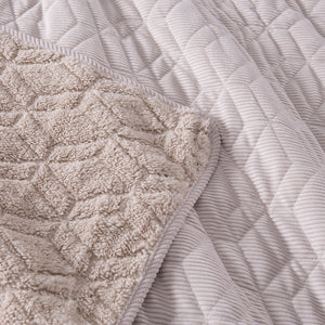 Descubre nuestro Cubrecama Quilt Corduroy Sherpa y disfruta tu cama como siempre lo has soñado. Su textura crea un ambiente acogedor en tu habitación, mientras la Sherpa te brinda una sensación suave y cálida, ideal en las noches de invierno.