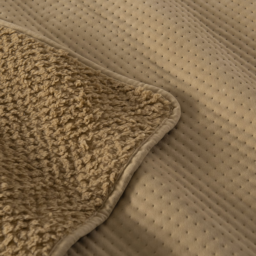 Descubre nuestro Cubrecama Quilt Smooth Sherpa y disfruta tu cama como siempre lo has soñado. Su textura crea un ambiente acogedor en tu habitación, mientras la Sherpa te brinda una sensación suave y cálida, ideal en las noches de invierno.