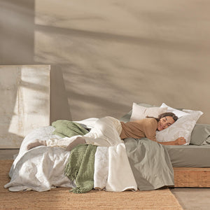 Esta tela tiene lo mejor de dos mundos; cuenta con un porcentaje de algodón que lo hace suave y respirable, y también con poliéster para aumentar su resistencia a la abrasión y las arrugas. Nuestros Quilts Jacquard tienen bordados y tramas que aportan una interesante textura a la ropa de cama. Descubre todos los diseños que tenemos para ti.