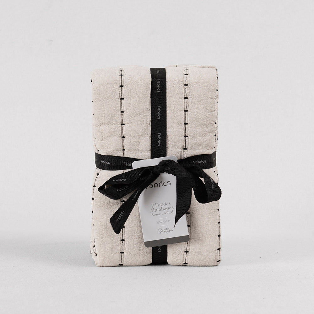 Este set de fundas es el complemento perfecto para el cubrecama Lorenzo. Con el mismo tejido, 100% algodón, viste tus almohadas haciendo el match perfecto en tu ropa de cama. Combínalos con los cojines de la colección y será un dormitorio soñado.