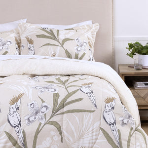Plumón Estampado Sherpa Parrots 1.5 Plazas Beige