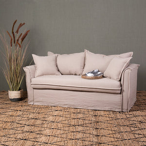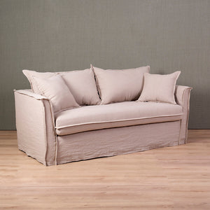 ¿Sabías que práctico y elegante no son términos excluyentes en decoración? Nuestro Sofá Santana es prueba de ello. Confeccionado en talleres locales y a pedido, este sofá cuenta con una funda 100% lino que es removible para que puedas lavarla fácilmente. Su diseño acogedor y relajado no deja de ser elegante, gracias a sus cuidadas terminaciones; el lino es un material súper resistente y noble a la vez. Elige entre todos los colores disponibles el que más te guste.