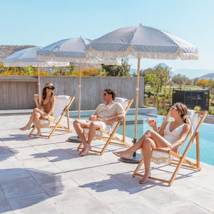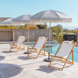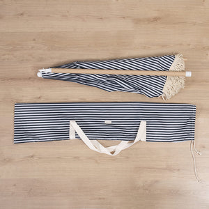El Quitasol Marbella Azul Rayas es perfecto para un día de playa con estilo. Con su bolso contenedor, puede transportarlo fácilmente y con su inclinación regulable, siempre encontrará la sombra perfecta. La punta con hilo le permite perforar la arena.