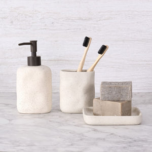 Nuestros Sets de 3 piezas Arena se integran perfectamente a aportando sencillez y estilo a tu baño. Una adición discreta que eleva la decoración con su diseño armonioso y funcionalidad impecable.