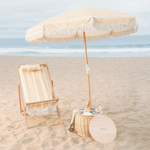 Material: Estructura de madera de eucalipto. Tela exterior repelente al agua (100% poliéster).