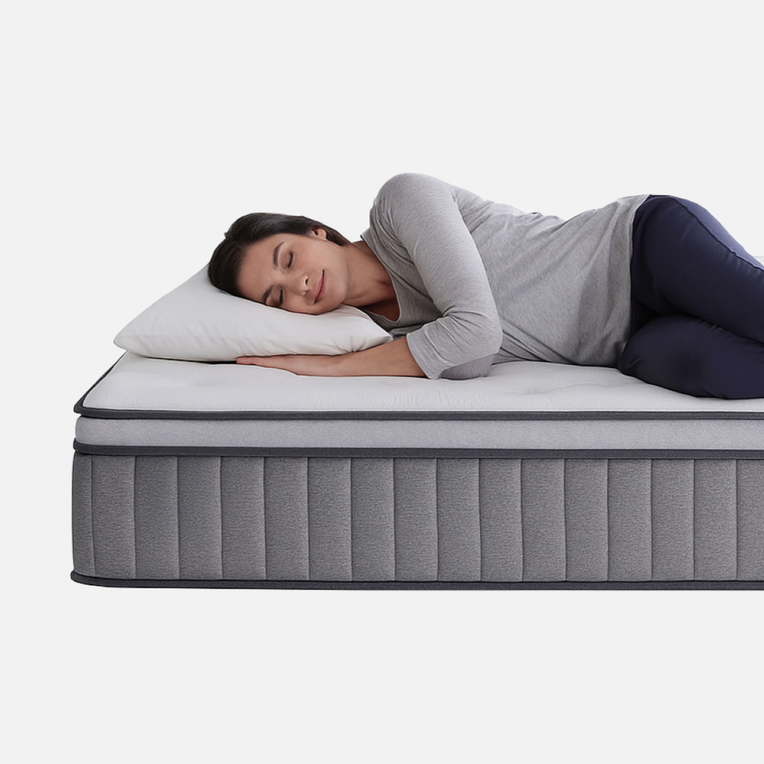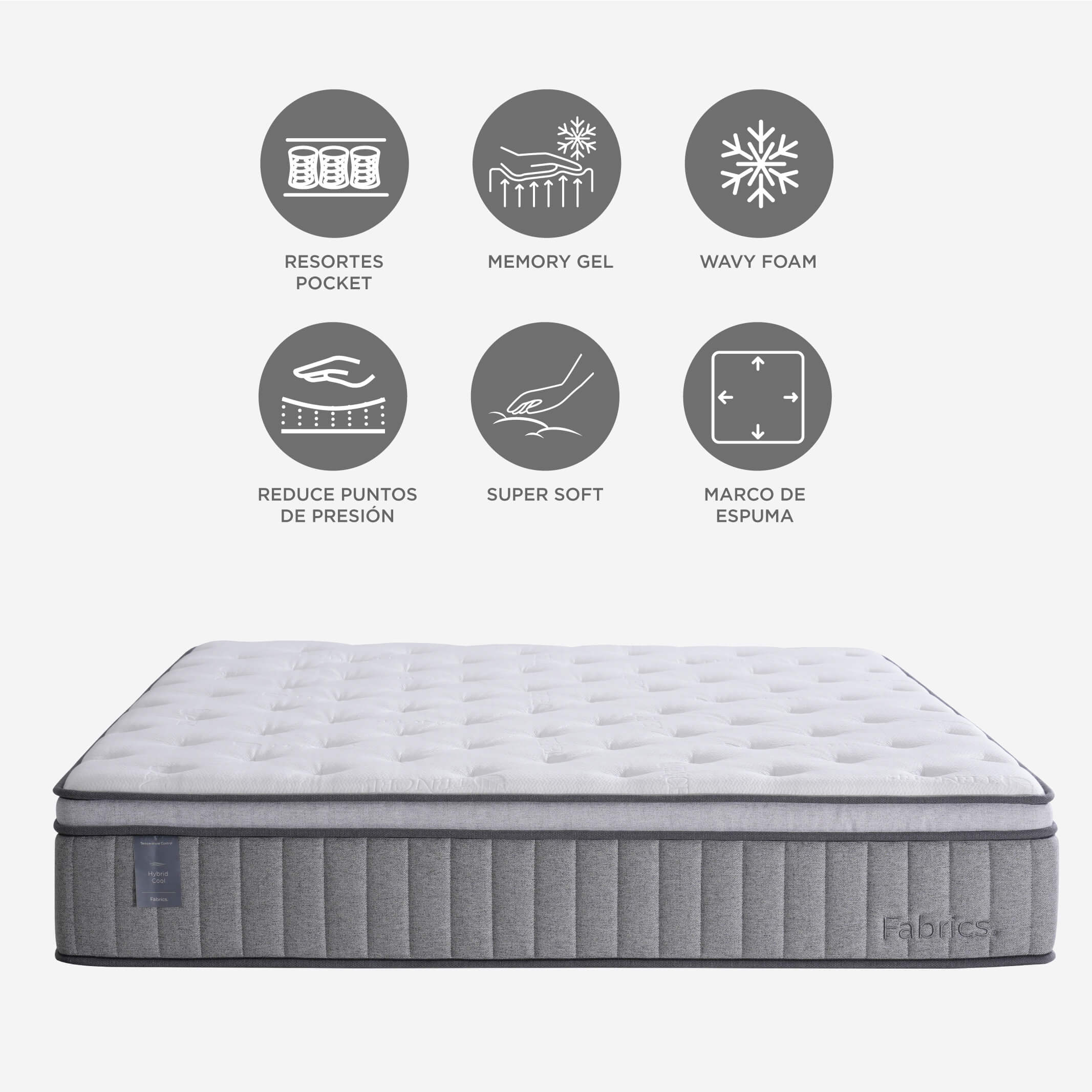 La capa de Memory Gel reduce puntos de presión y regula la temperatura corporal, brindando un efecto cooling que mejora la calidad del sueño.