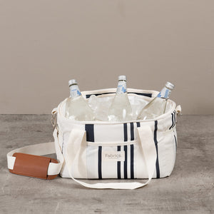 Nuestro Cooler Tela Azul Rayas es más que un contenedor de alimentos. Cuenta con bolsillos en sus 4 caras y su tapa que funciona como tabla de picar, mantén tus comidas frescas gracias a su interior PEVA. Una forma sofisticada y práctica de disfrutar tus comidas en cualquier lugar.