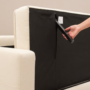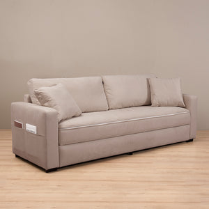 El sofá cama Roberta es la combinación perfecta de estilo y funcionalidad. Con su estructura de 3 cuerpos, resortes pocket y cubierta de memory foam con cierre, ofrece un confort excepcional para tu descanso diario. Sus prácticos bolsillos laterales te permiten tener todo a mano, mientras que su fácil transformación en cama garantiza comodidad para tus invitados. Además su tela es de fácil cuidado. Ideal para hogares modernos que buscan diseño y practicidad.